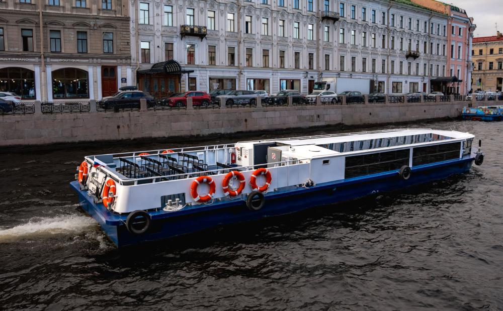Теплоход с открытой палубой и тёплым салоном, музыкальное сопровождение или аудиогид